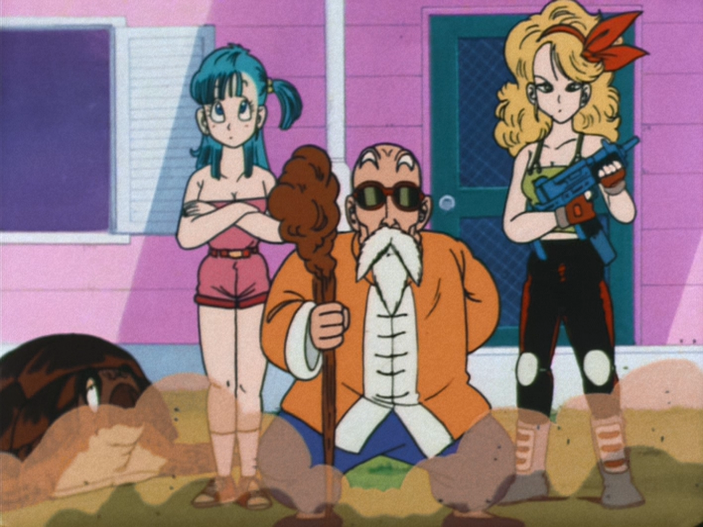 Bulma, Roshi and Launch awaiting Yamcha to pick them up