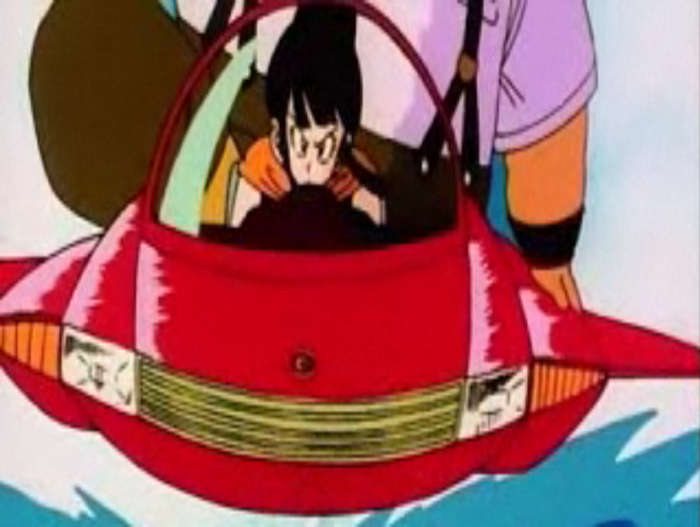 Chi-Chi is shown doing her house hold duties. She watches Goku go off on the Flying Nimbus to rescue Bulma and Master Roshi from Dr. Kochin. When Gohan tries to sneak off, she yells at him to stop. Gohan eventually does sneak off and leaves Chi-Chi worried.