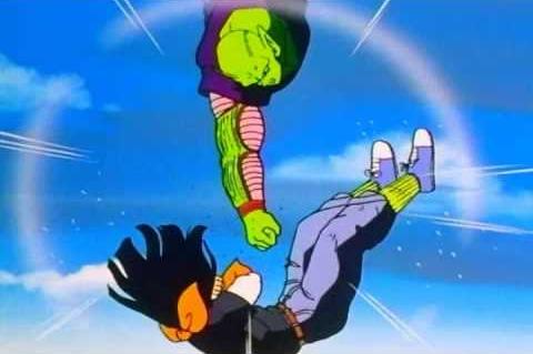 Piccolo, after fusing with Kami, punches Android 17