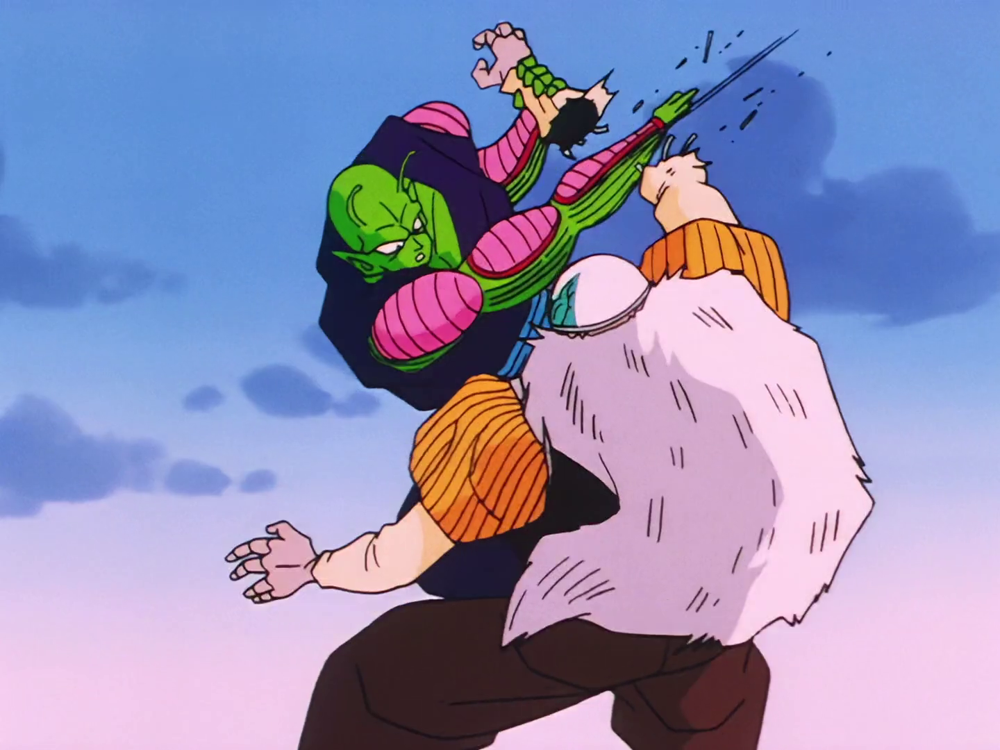 Piccolo battles Android 20, severing the android's right arm