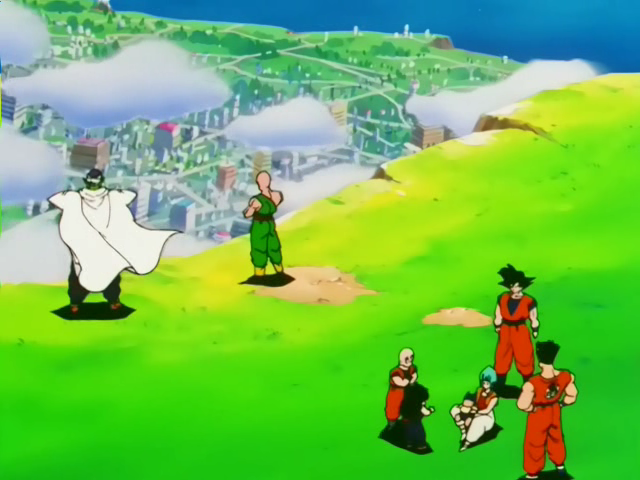 Piccolo and the others waiting for the Androids to appear
